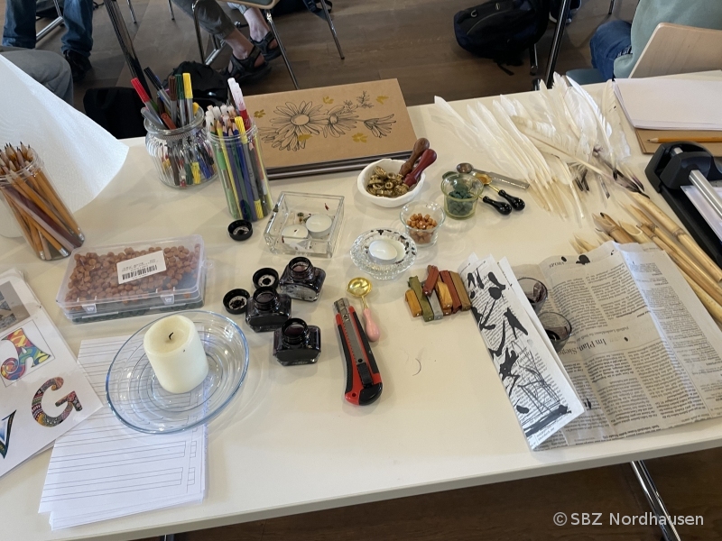 Der Exkursionstag begann jeweils mit einer Führung durch Ausstellungsteile des Heringer Schlosses. Im Anschluss erhielten die Teilnehmer Wissen über historische Hilfswissenschaften, wie zum Beispiel die Heraldik und die Sphragistik, vermittelt. Ihre Fertigkeiten und Kenntnisse konnten sie zum Abschluss bei der Erstellung eines gesiegelten Briefes (unter anderem geschrieben mit Gänsefedern) unter Beweis stellen.