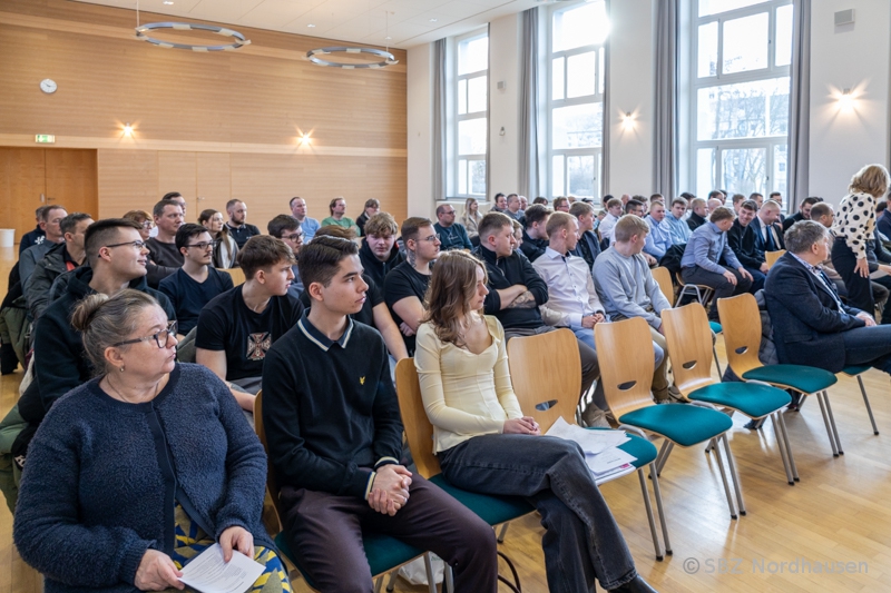 Ein wichtiger Lebensabschnitt fand am Freitag seinen Abschluss: In der Aula der Morgenröte verabschiedeten Lehrerinnen und Lehrer der Abteilung 1 des SBZ Nordhausen die ersten Auszubildenden des Schuljahres 2025/2026. Die feierliche Zeugnisübergabe markierte den erfolgreichen Abschluss der Kraftfahrzeugmechatroniker (KFZ22) sowie der Konstruktionsmechaniker (KM22).