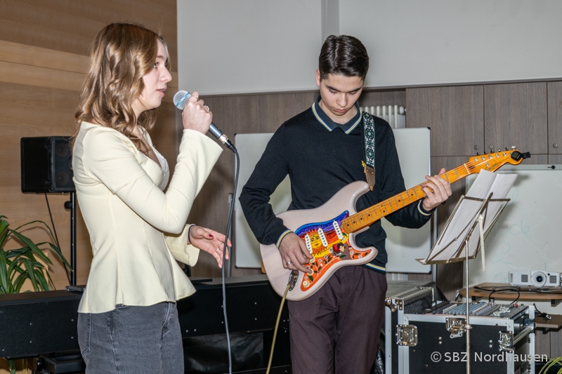 Lina Kurch (Gesang) und Lennon Becker (Gitarre) eröffneten die Veranstaltung mit dem Song „Forever Young“ (Alphaville). Frau Bettge-Winsel und Herr Böning (beauftragter Leiter der Abteilung 1) begrüßten die Absolventen und Gäste - Angehörige und Freunde, Vertreter der Ausbildungsbetriebe und des Lehrerkollegiums - und führten durch die Veranstaltung.