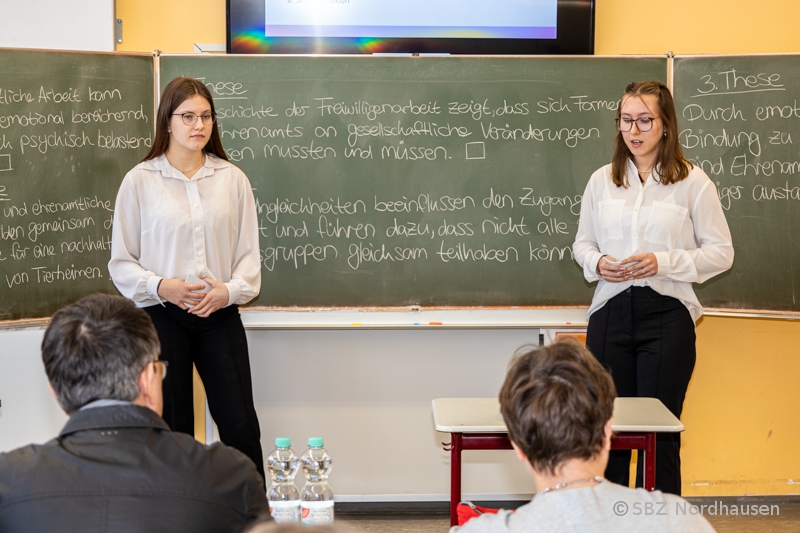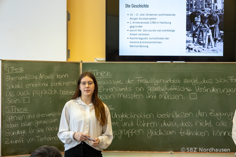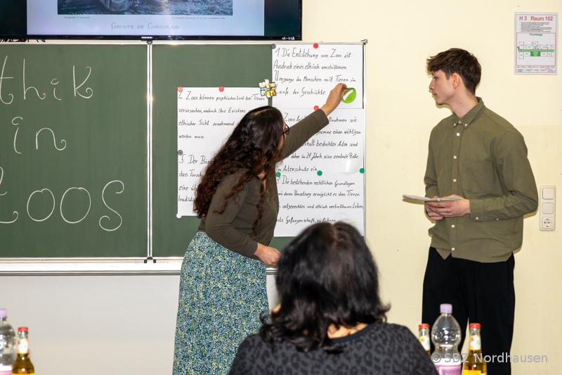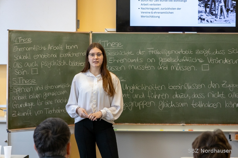 - Gesellschaft & Integration: Eine Gruppe beleuchtete die Rolle von Deutsch als Fremdsprache und wie gezielte Sprachförderung die Integration maßgeblich unterstützen kann. Praktisches Engagement stand im Fokus der Arbeit über die Bedeutung der Freiwilligenarbeit, die am Beispiel des Tierheims Nordhausen untersucht wurde.