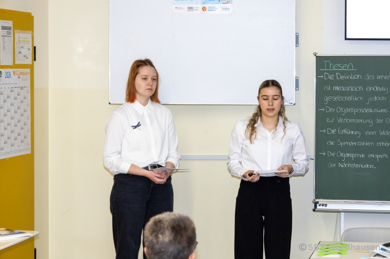Inhaltlich reichte das Spektrum von ethisch-medizinischen Fragestellungen bis hin zu naturwissenschaftlichen, psychologischen, ökologischen und gesellschaftskritischen Themen. So setzte sich eine Präsentation mit dem Spannungsfeld von Schenken und Geben auseinander und beleuchtete die ethischen, medizinischen und rechtlichen Aspekte der Organspende. Ebenfalls im Fokus stand Wasserstoff: Gleich zwei Arbeiten beschäftigten sich kritisch mit seiner Rolle als Energieträger und stellten die Frage, ob er tatsächlich die energetische Zukunft darstellt oder eher ein überschätztes Versprechen ist.