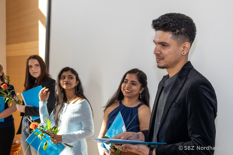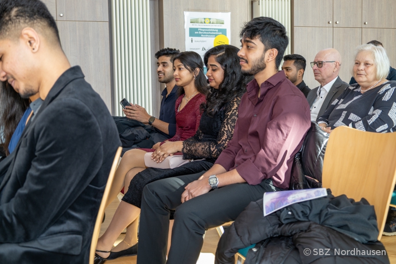 "Liebe Schülerinnen und Schüler, liebe Kolleginnen und Kollegen, liebe Gäste, wir sind heute hier zusammengekommen, um einen ganz besonderen Tag zu feiern. Es ist ein Tag voller Freude, Stolz und vielleicht auch ein bisschen Aufregung. Vor drei Jahren sind viele von Ihnen, liebe Absolventinnen und Absolventen, aus Indien nach Deutschland gekommen. Das war ein riesiger Schritt! Sie haben teilweise Familien verlassen, ein neues Land kennengelernt und eine verdammt schwere Sprache gelernt. In der Pflegeausbildung hat man Ihnen gezeigt, wie man Menschen jeden Alters hilft. Sie haben gezeigt, dass Sie ein großes Herz dafür haben. Heute ist der Tag ihrer Zeugnisse." Mit diesen Worten begrüßte unser Schulleiter, Herr Martin Drick, am vergangenen Freitag die Anwesenden in der Aula am Schulteil Morgenröte. Er beglückwünschte die erfolgreichen Absolventinnen und Absolventen der Pflegeausbildung und drückte Dank und Anerkennung all jenen aus, die während der Ausbildung helfend zur Seite standen: Praxisanleiterinnen, Lehrerinnen und Lehrer, Eltern, Freunde, ... .