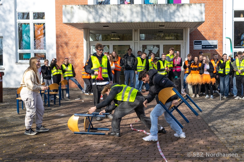 Der (vermutlich😉) letzte Schultag - gern auch mal „Idiotentag“ genannt - der Klassen BG26 am Beruflichen Gymnasium des Staatlichen Berufsschulzentrums Nordhausen markierte einen stimmungsvollen Abschluss der Schulzeit. Mit kreativen Verkleidungen, rituellen Spielen und den traditionellen Streichen sorgten die Schülerinnen und Schüler für gute Laune im ganzen Schulgelände. Trotz der ausgelassenen und teilweise schrillen Aktionen blieb der Respekt gegenüber der Schule und den Lehrkräften stets gewahrt. Danke!