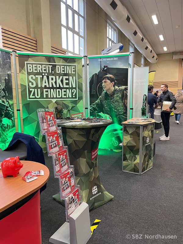 Die Anzahl der werbenden Unternehmen war so groß, dass in diesem Jahr auch die Bühne der Mehrzweckhalle in der Bundeswehrkaserne Platz für die Aussteller bieten musste. Viele Werber und künftige Bewerber waren an diesem Tag der Präsenzmesse auf Achse; mögen sich Topf und Deckel finden, damit sich aller Aufwand lohnt.