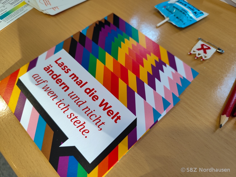 Anlässlich des anstehenden Welt-Aids-Tages am 1. Dezember besuchte Matthias Gerschwitz das SBZ Nordhausen unter der Organisation von Frau Wolff (Gesundheitsamt) sowie Frau Manzke (Gesundheitsbeauftragte SBZ NDH). Matthias Gerschwitz, welcher als einer von ca. 100.000 Menschen in Deutschland, 1994 positiv auf HIV (Human Immunodeficiency Virus) getestet wurde, erzählte mit einem Augenzwinkern dennoch eindrucksvoll seine Geschichte und dabei auch den geschichtlichen Werdegang von HIV und der daraus resultierenden Erkrankung AIDS (acquired immune deficiency syndrome).