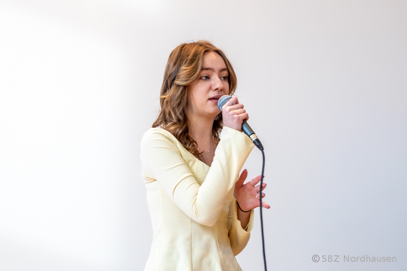 Lina Kurch (Gesang) und Lennon Becker (Gitarre) eröffneten die Veranstaltung mit dem Song „Forever Young“ (Alphaville). Frau Bettge-Winsel und Herr Böning (beauftragter Leiter der Abteilung 1) begrüßten die Absolventen und Gäste - Angehörige und Freunde, Vertreter der Ausbildungsbetriebe und des Lehrerkollegiums - und führten durch die Veranstaltung.