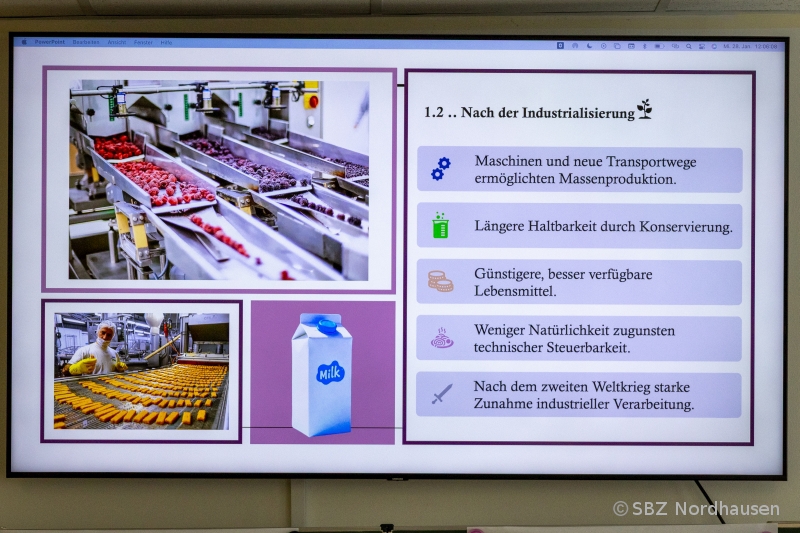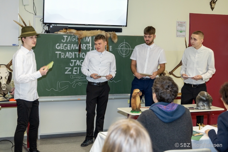 Gesellschaftliche und wirtschaftliche Zusammenhänge wurden unter anderem in der Arbeit zur Macht der Lebensmittelindustrie thematisiert, die Strategien zur Beeinflussung des Konsumverhaltens und der Ernährung offenlegte. Einen ebenso kritischen Blick warf die Präsentation zur Jagd in der Gegenwart, die der Frage nachging, ob die traditionelle Jagd heute noch zeitgemäß ist.