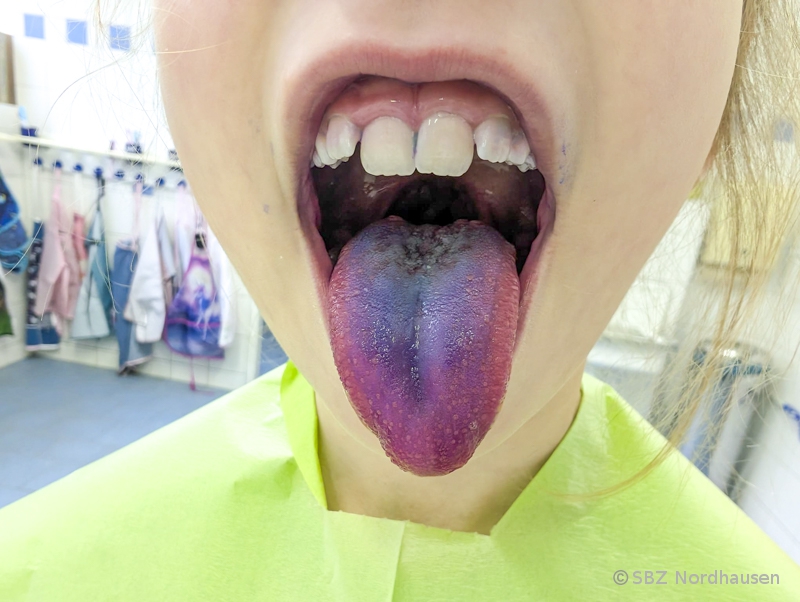 Es wurde geknetet, gebastelt, geforscht und ausprobiert. Die Kinder formten eigene Gebisse, gestalteten informative Plakate und entdeckten Zahnbakterien mit der Lupe. Besonders spannend war das Anfärben der Zähne. Dabei konnten die Grundschülerinnen und Grundschüler selbst sehen, wo noch Beläge vorhanden waren – und im Anschluss direkt noch einmal die richtige Putztechnik üben.