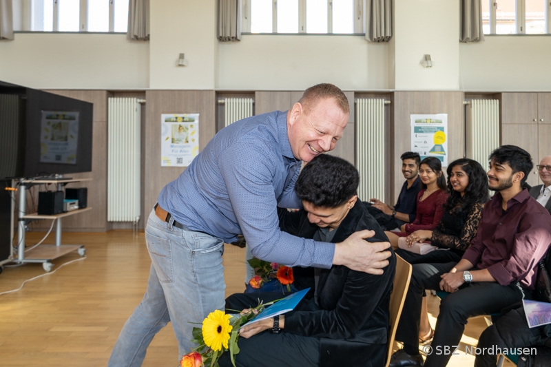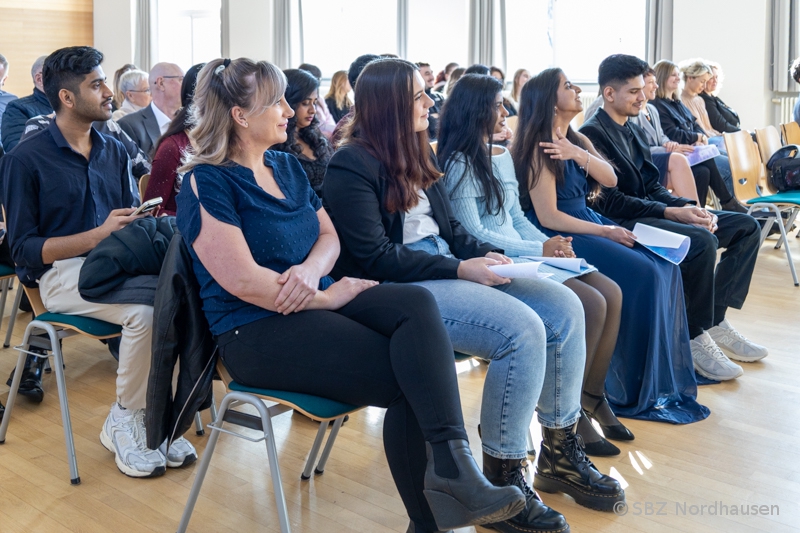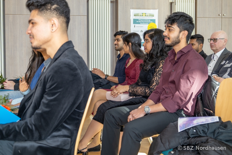 "Liebe Schülerinnen und Schüler, liebe Kolleginnen und Kollegen, liebe Gäste, wir sind heute hier zusammengekommen, um einen ganz besonderen Tag zu feiern. Es ist ein Tag voller Freude, Stolz und vielleicht auch ein bisschen Aufregung. Vor drei Jahren sind viele von Ihnen, liebe Absolventinnen und Absolventen, aus Indien nach Deutschland gekommen. Das war ein riesiger Schritt! Sie haben teilweise Familien verlassen, ein neues Land kennengelernt und eine verdammt schwere Sprache gelernt. In der Pflegeausbildung hat man Ihnen gezeigt, wie man Menschen jeden Alters hilft. Sie haben gezeigt, dass Sie ein großes Herz dafür haben. Heute ist der Tag ihrer Zeugnisse." Mit diesen Worten begrüßte unser Schulleiter, Herr Martin Drick, am vergangenen Freitag die Anwesenden in der Aula am Schulteil Morgenröte. Er beglückwünschte die erfolgreichen Absolventinnen und Absolventen der Pflegeausbildung und drückte Dank und Anerkennung all jenen aus, die während der Ausbildung helfend zur Seite standen: Praxisanleiterinnen, Lehrerinnen und Lehrer, Eltern, Freunde, ... .